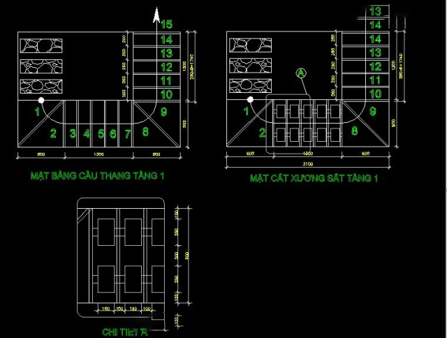 Bản vẽ autocad lan can kính – Lan can cầu thang