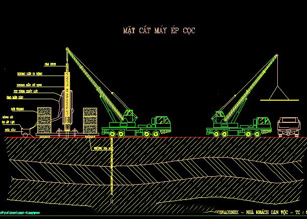 File autocad Bố trí máy thi công ép cọc bê tông cốt thép làm móng nhà cao tầng