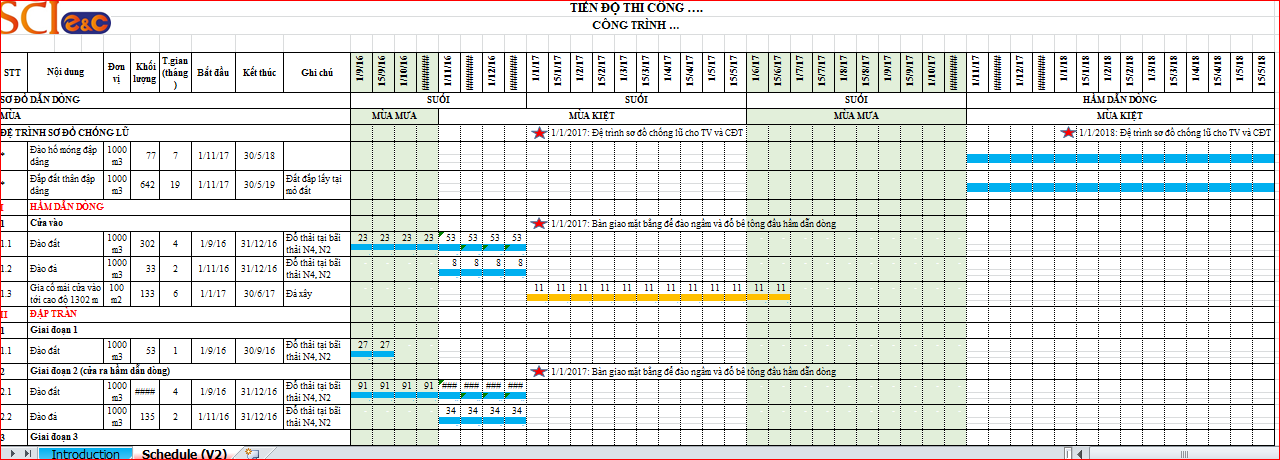 [File Excel] Quản lý tiến độ công trình xây dựng