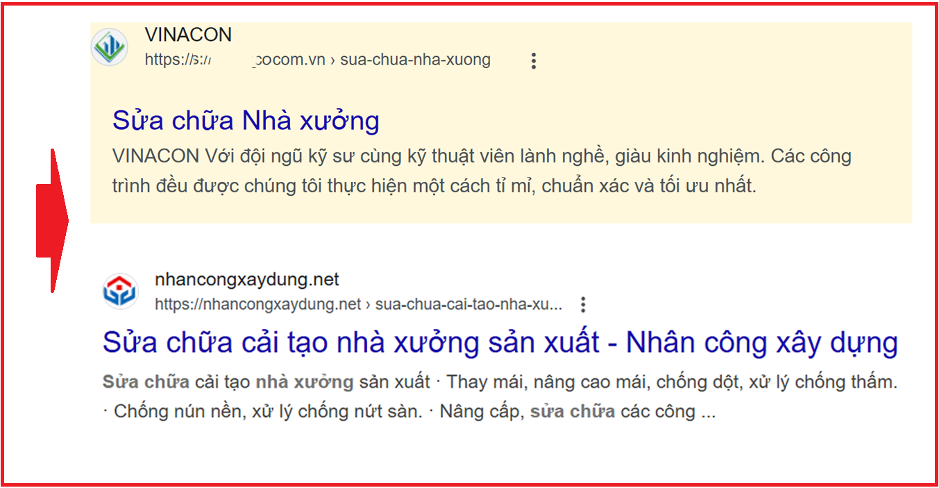Bước 2: Gõ từ khóa tìm kiếm sửa chữa nhà xưởng