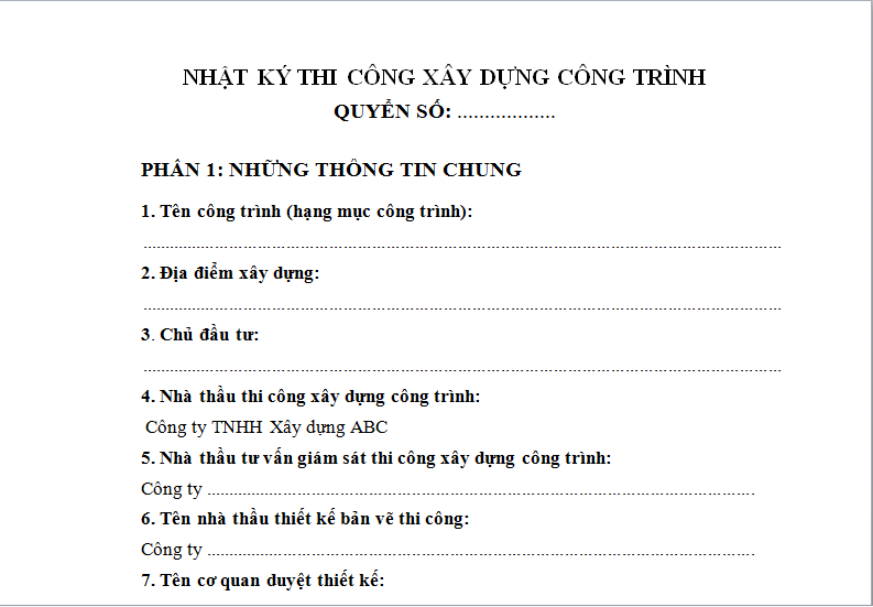 Mẫu nhật ký thi công