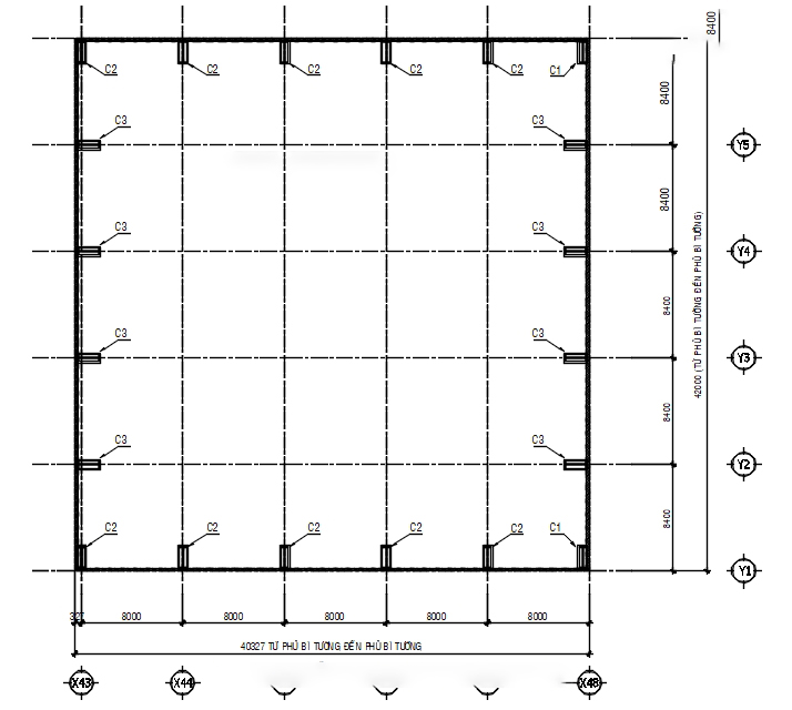 – chiều dài 40m, bước khung 8m
